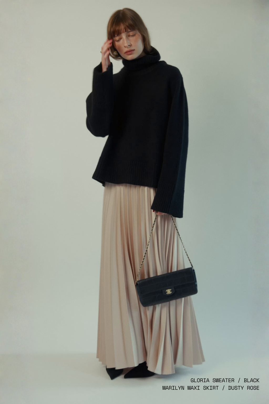 Marilyn Accordion-Pleated Maxi Skirt in Dusty Rose