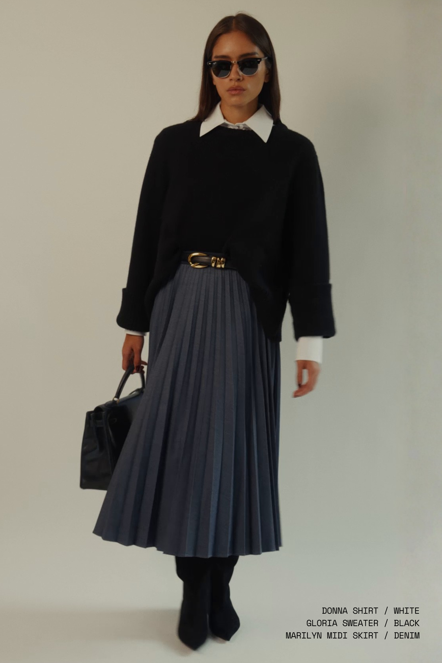 Marilyn Accordion-Pleated Midi Skirt in Denim