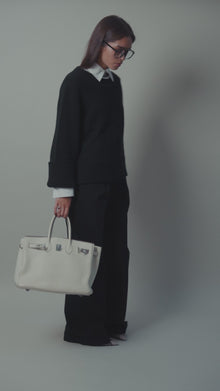 The Beverly wide-leg pant is a mid to high rise, wide-leg long pant that is designed to fit loose and wide through the leg.