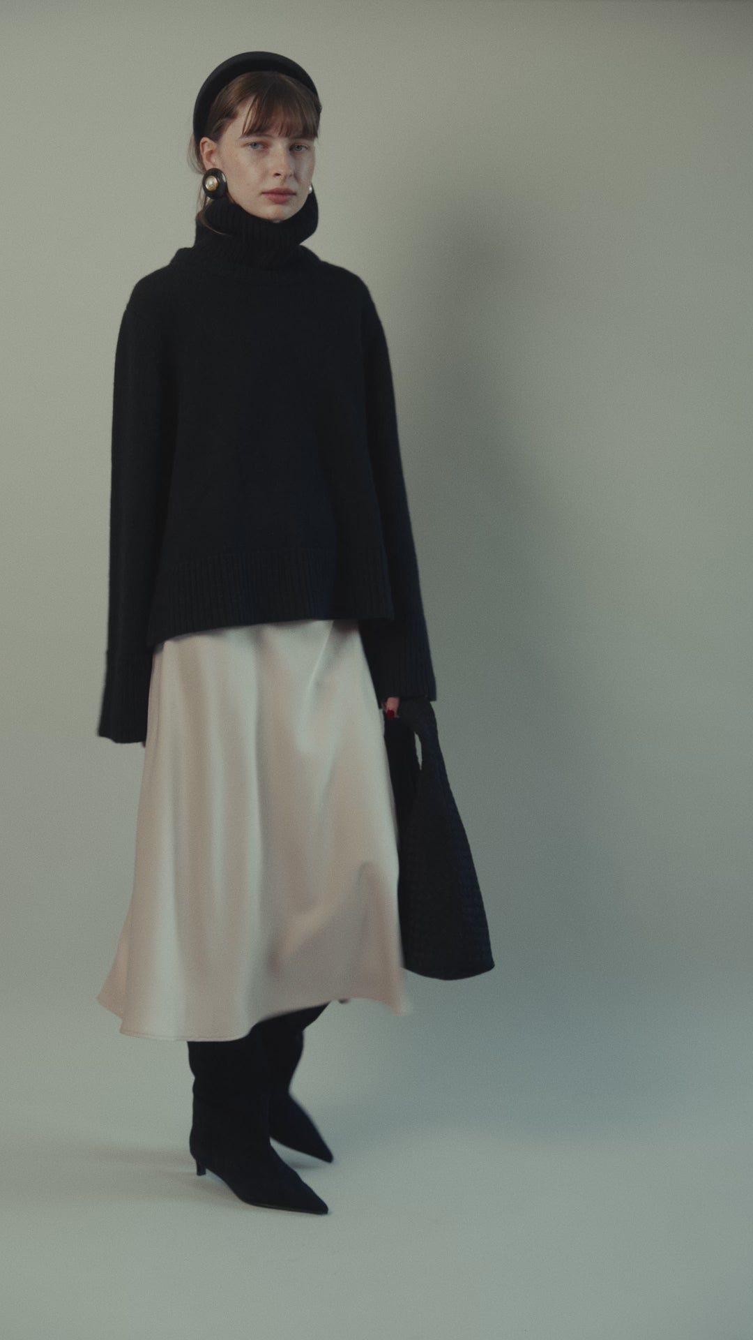 The Kate slip skirt is a bias cut design with an adjustable drawstring waist and is designed to fit the body but flow out at the hem.
